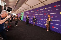 Margot Robbie and founder, creative director John Molson, walks the black carpet at Centennial Park in Sydney, Sunday, February 22, 2026.