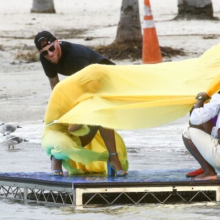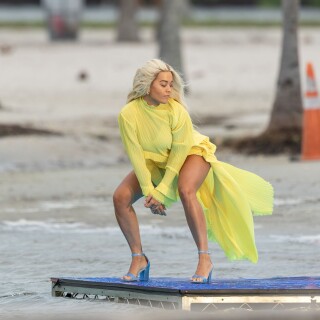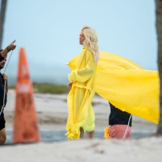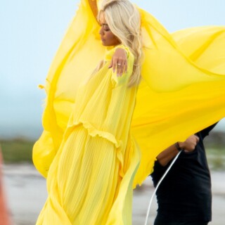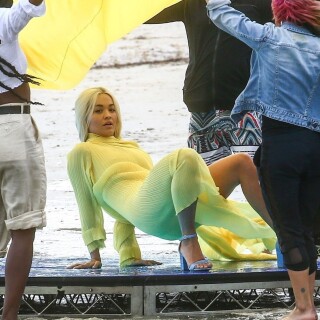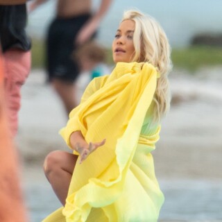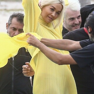 Rita Ora has a wardrobe malfunction while filming a new music video in Miami. Rita Ora was wearing a bright yellow dress while onset for her latest music video, 01/10/2020.