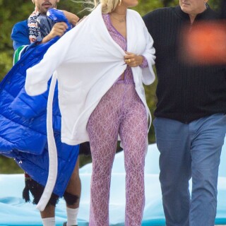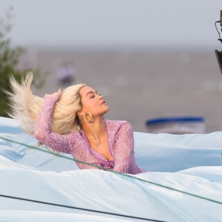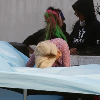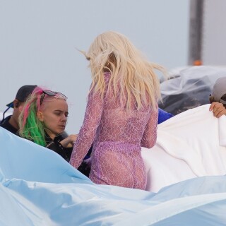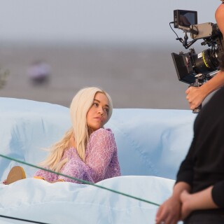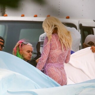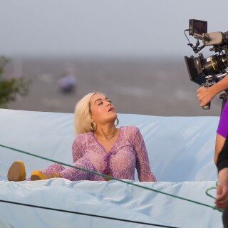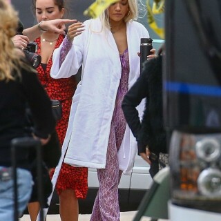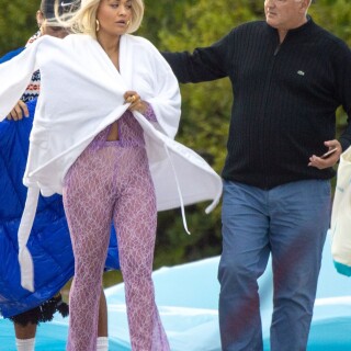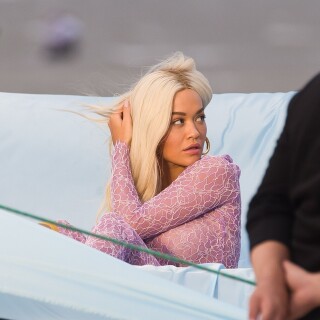 Rita Ora takes direction before playfully rolling around on a trampoline in a sexy pink lace outfit while shooting a music video in Miami on Friday. The English songstress doesn't look thrilled as she returns to her trailer after shooting the scene.